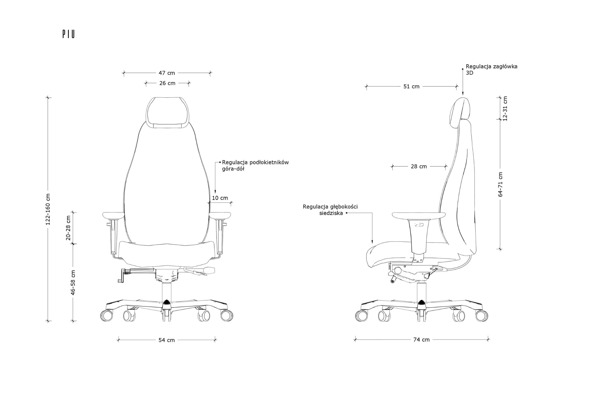 - Regulacja podłokietników (góra-dół)