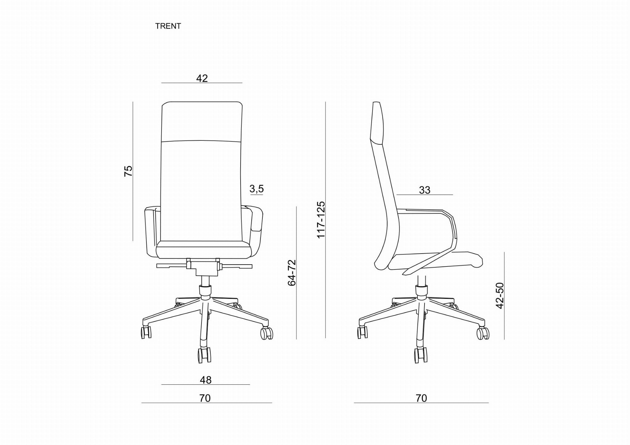 Standardowo fotel TRENT wyposażony w kółka do miękkich powierzchni (wykładzina) Za dopłatą można zamówić kółka do powierzchni typu panele.