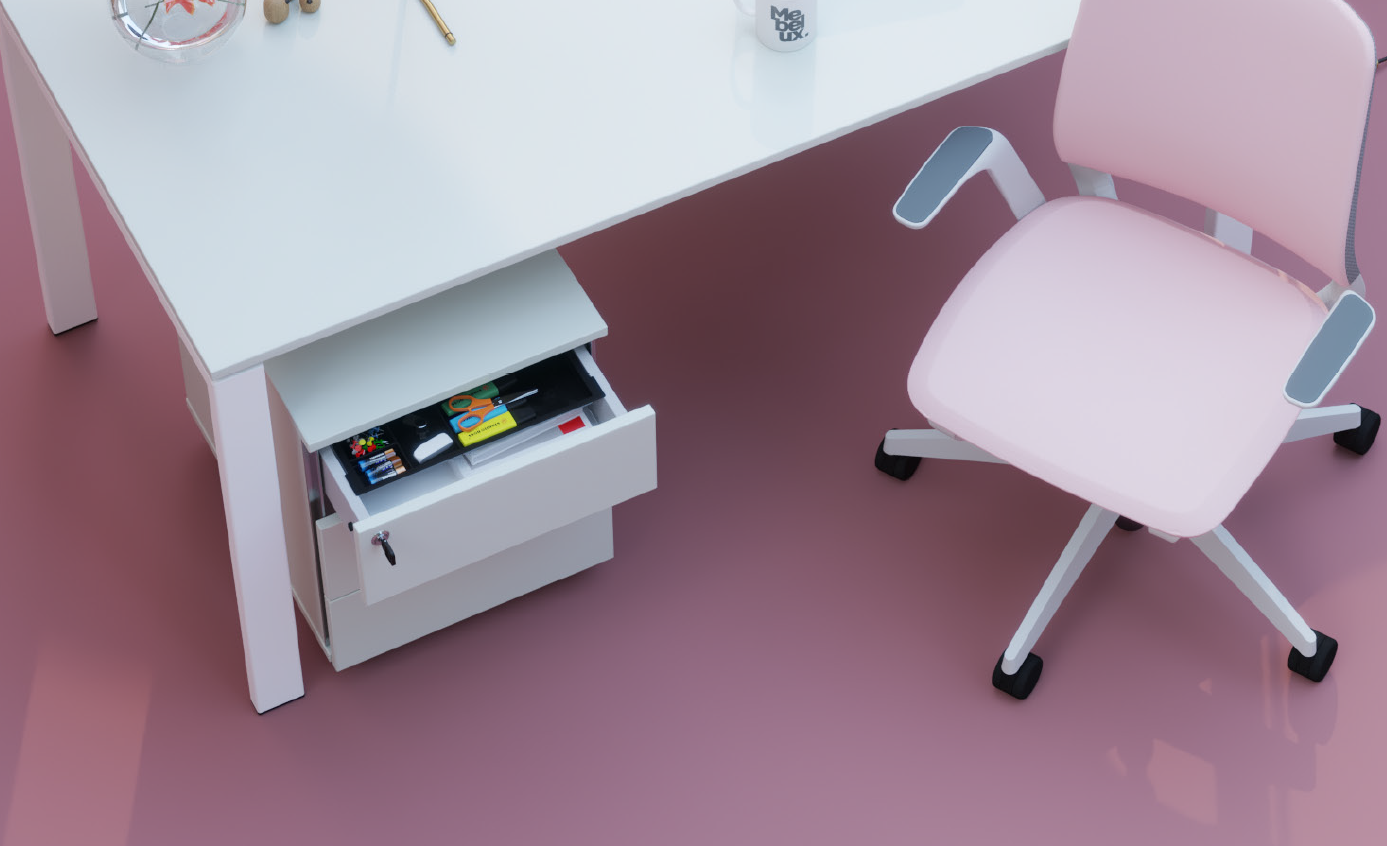 Kontenery podbiurkowe wyposażono w kółka jezdne z funkcją “stop”.