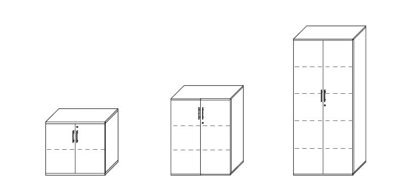 Wysokość szaf dostosowana do typowych segregatorów.