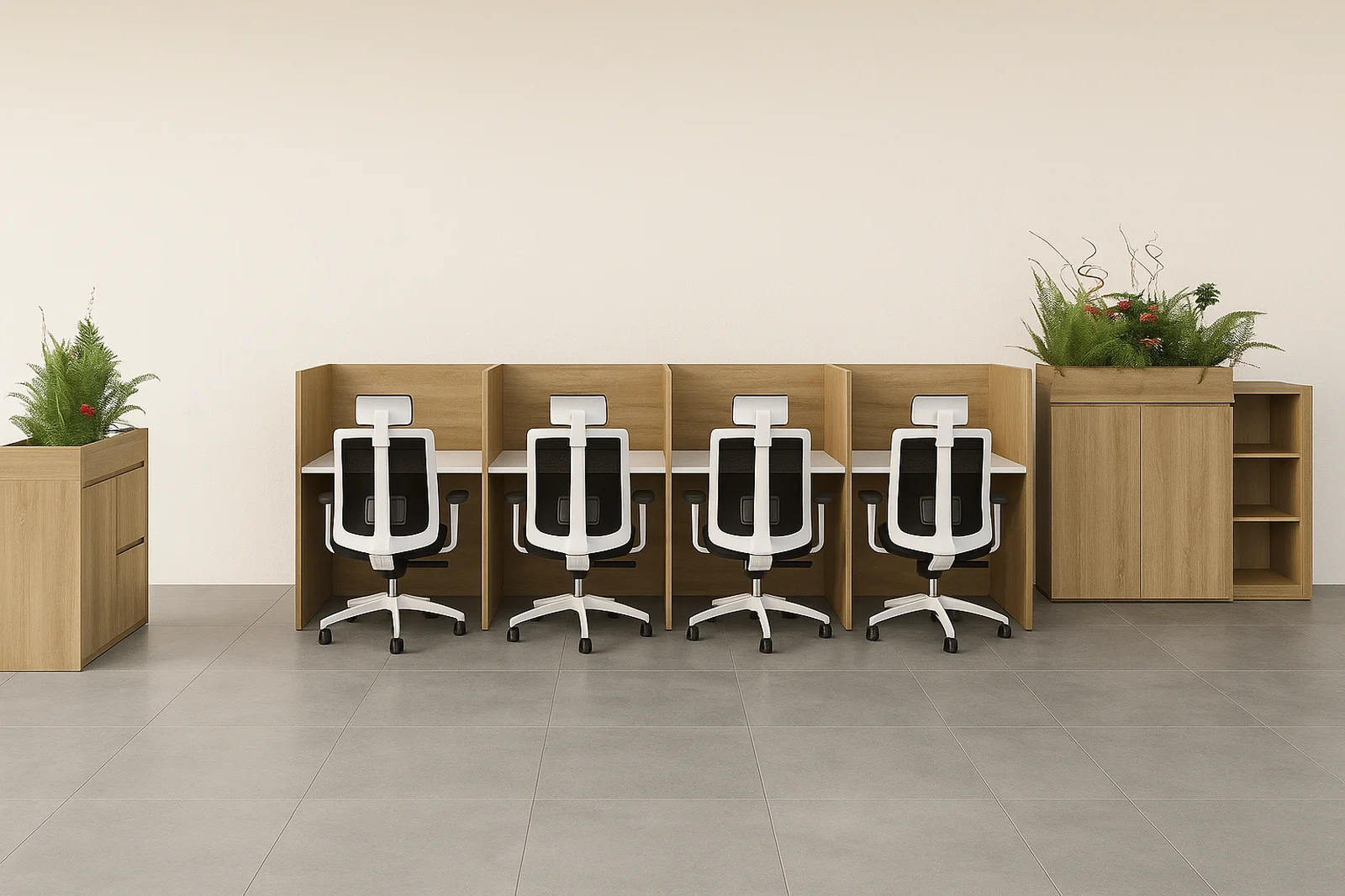 Co wyróżnia nasze meble od konkurencji? Nie idziemy na żadne kompromisy, nasze meble są stabilne i dobrze wykonane. Zdajemy sobie sprawę, że meble do call center muszą wytrzymać więcej i dłużej, dlatego stawiamy na jakość. Ścianka przednia zawsze wykonywana jest na całą wysokość, co wpływa na stabilność boksów. Wszystkie Przegrody wyposażono w stopki do poziomowania co umożliwia dobrą regulację nawet przy długich rzędach stanowisk. Meble wykonane z płyty gr. 18mm.