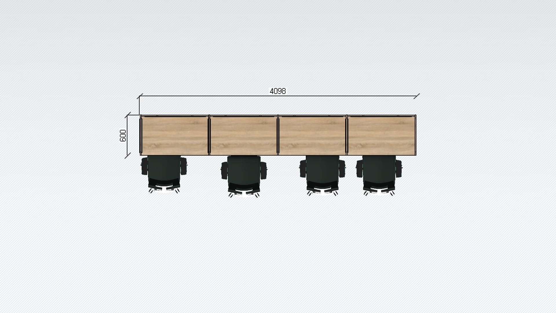 Boksy call center mogą być modyfikowane wg wytycznych klienta. Częstą modyfikacją jest wydłużenie ścianek bocznych względem blatu. Takie rozwiązanie przedstawiamy poniżej.