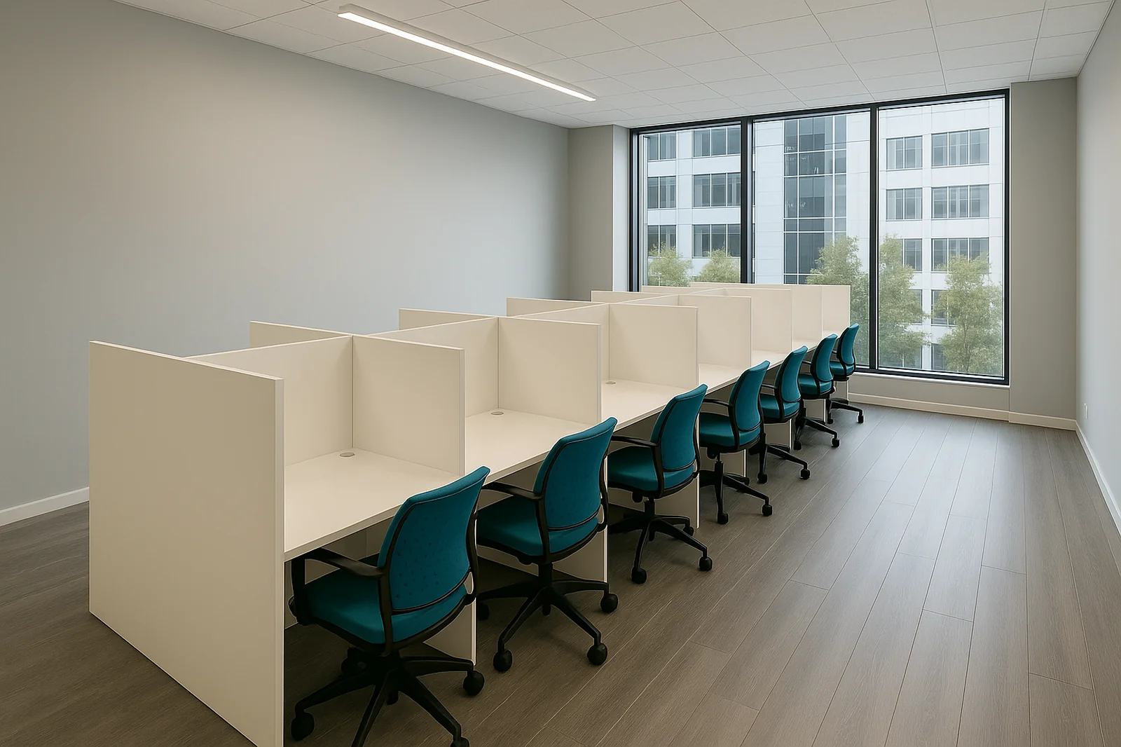 Zestaw 6 stanowisk call center (308/120/135h) to kompleksowe rozwiązanie przeznaczone dla firm, które potrzebują urządzić biuro open-space z maksymalną efektywnością miejsca.
