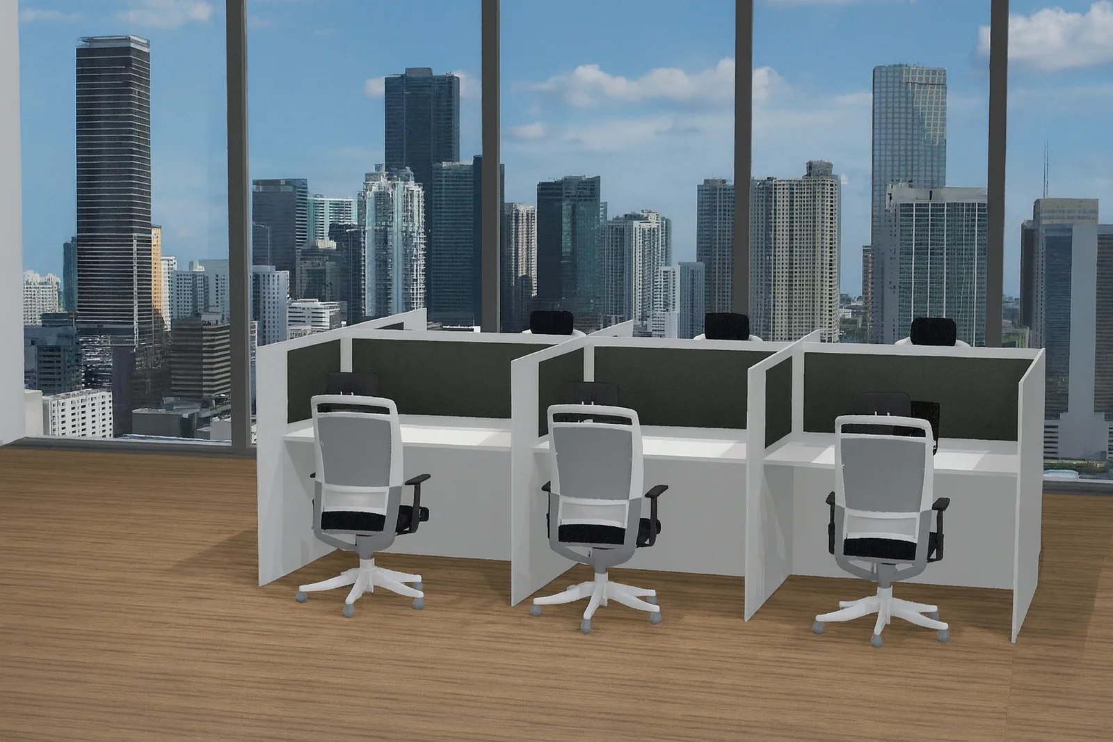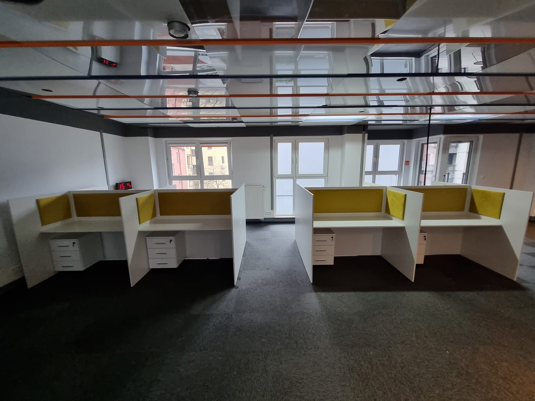 Modułowe stanowiska call center pozwalają na ekonomiczne zagospodarowanie przestrzeni biurowej zarówno w niewielkich pomieszczeniach jak i dużych powierzchniach typu open-space.