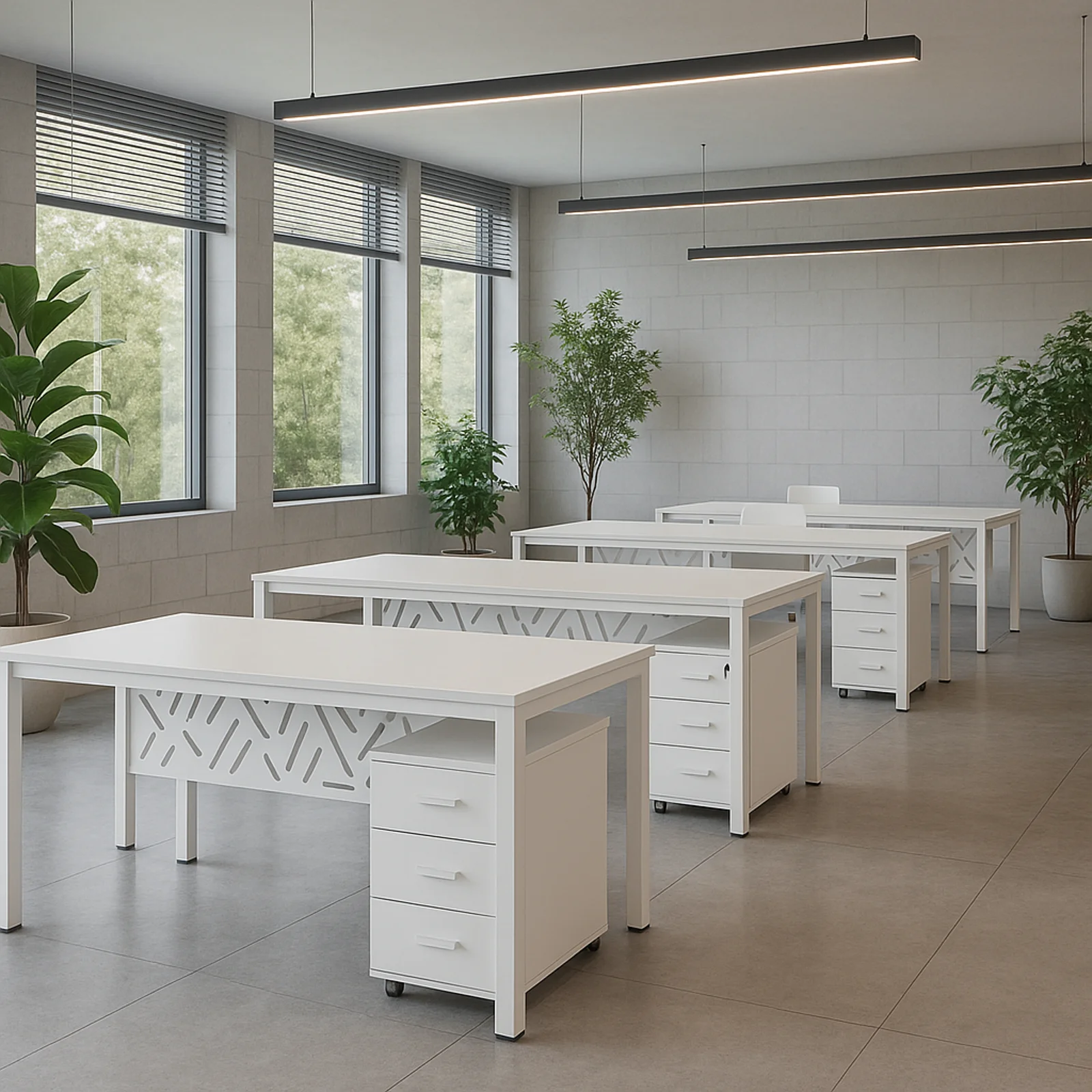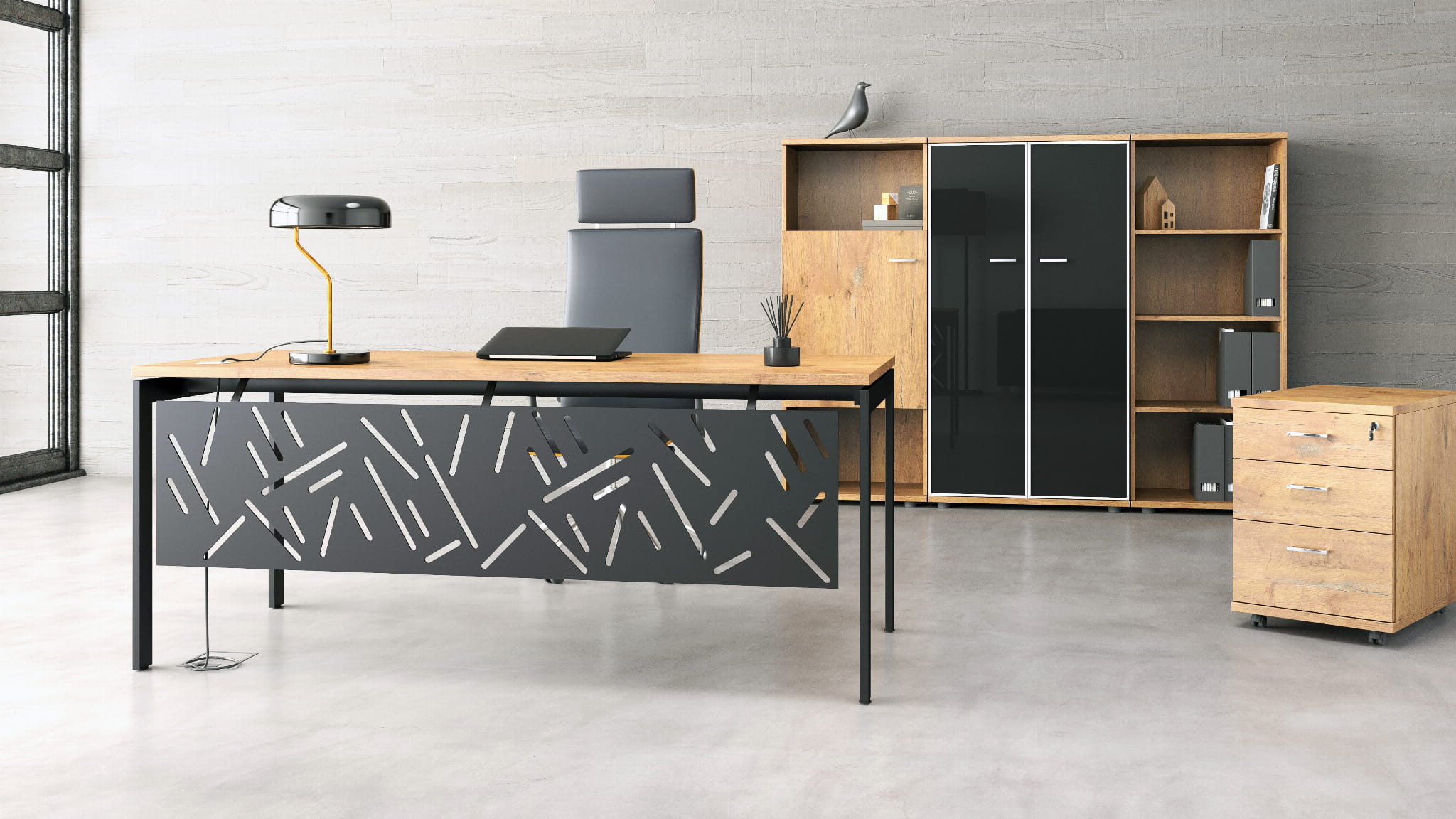 Na osłony biurek przewidziano do wyboru blachę perforowaną lub bardziej klasyczną formę - panele z płyty. Proponowana kolorystyka umożliwia dopasowanie mebli do indywidualnych potrzeb i preferencji.