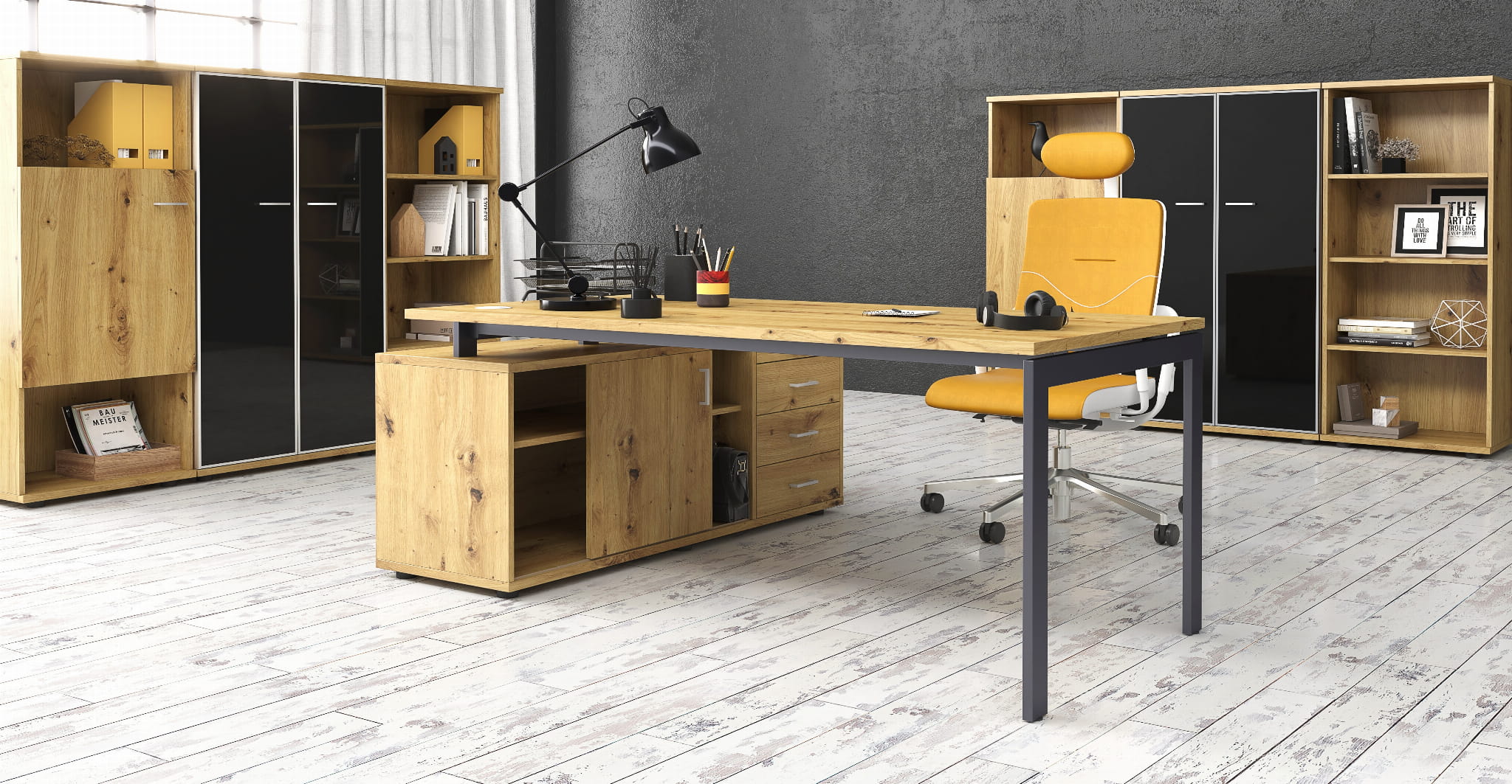 Meble gabinetowe PORTO nowoczesna linia i lekka forma. To propozycja systemu biurek dla współczesnego menedżera.