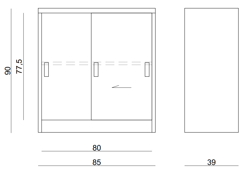 - Drzwi szafki wyposażone w zamek, zamykane na klucz (w komplecie 1 klucz)