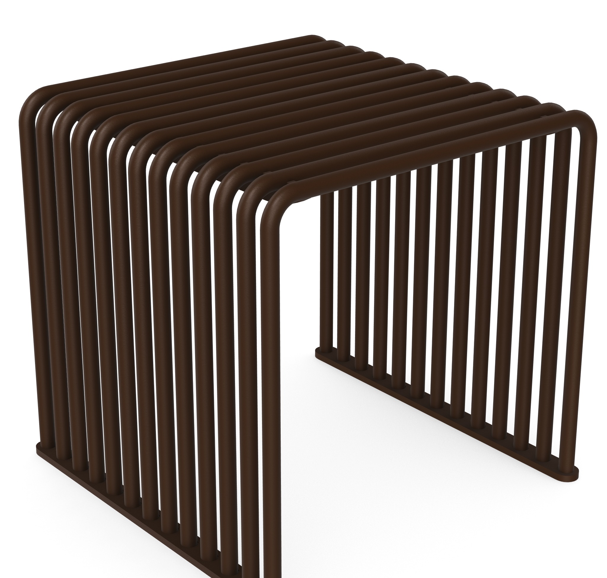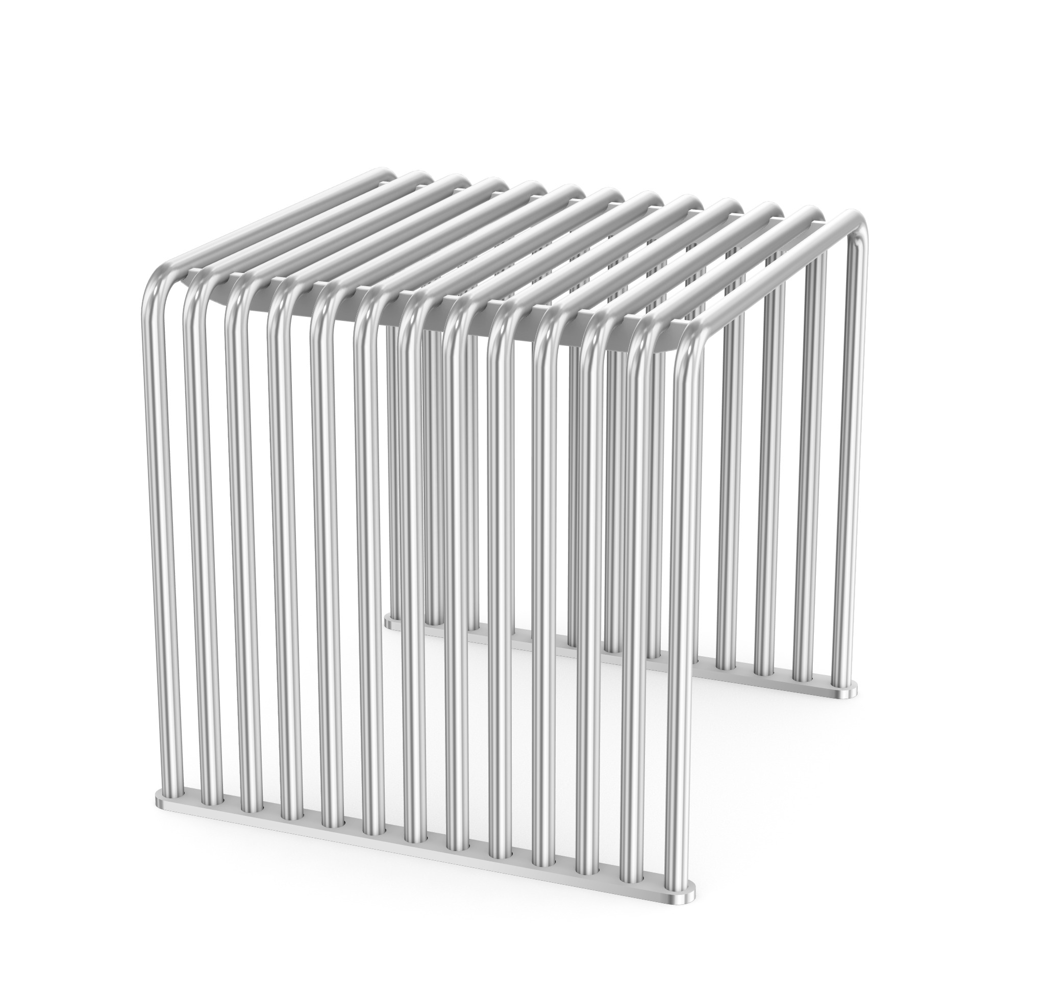 Siedzisko wykonane jest w całości ze stali malowanej proszkowo, co zapewnia wysoką odporność na uszkodzenia mechaniczne oraz warunki atmosferyczne. Konstrukcja została zaprojektowana z myślą o intensywnej eksploatacji, dzięki czemu doskonale sprawdza się zarówno w przestrzeniach indoor, jak i outdoor.