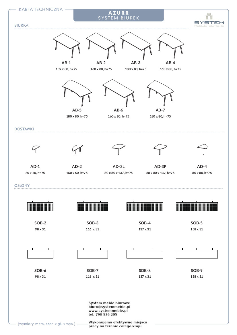 Biurka z systemu AZZUR :